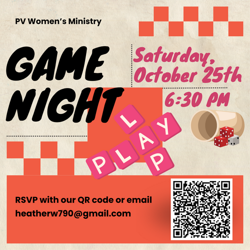 Ladies, it’s time for some fun! Join us for Game Night on Saturday, October 25th at 6:30 PM.